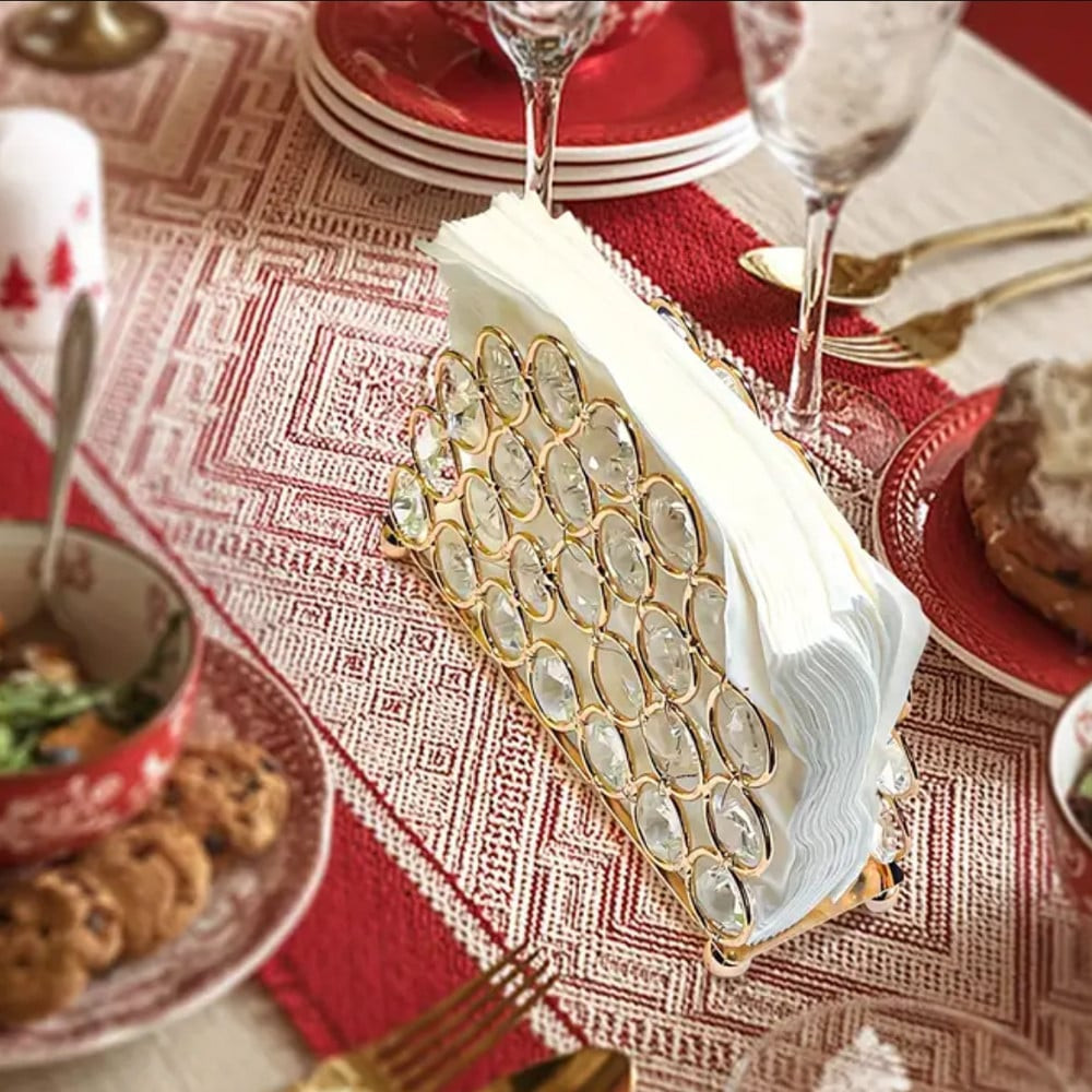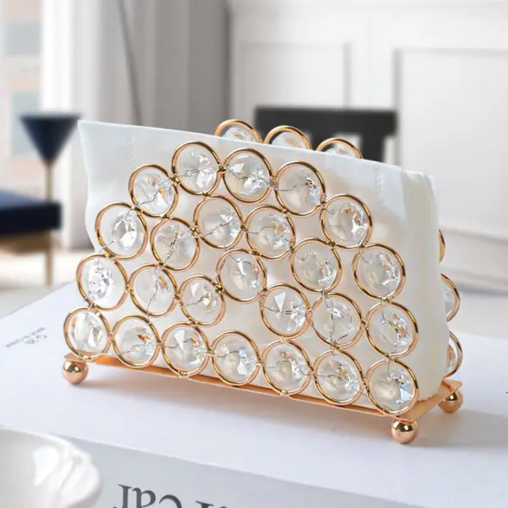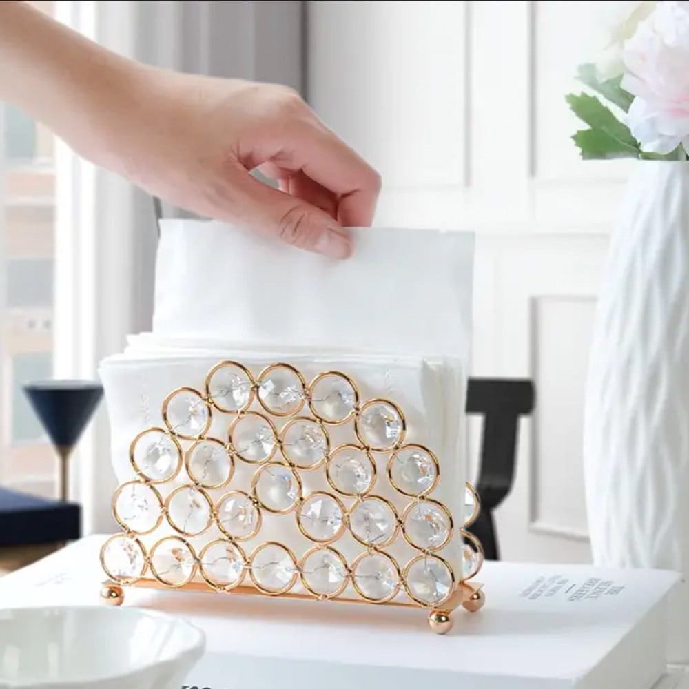 Suportul Pufo Elleganteste ideal pentru a fi folosit ca recipient de depozitare a servetelelor in bucatarie, in baie, la birou, in baruri, cafenele, restaurante sau oriunde doresti tu. Poate fi un must have pentru orice salon, make-up artist sau tehnician de unghii. Aceasta este o piesa eleganta, realizata din metal si cristale din plastic, ce va da cu siguranta o nota de lux si clasa oricarui loc in care va fi folosit.