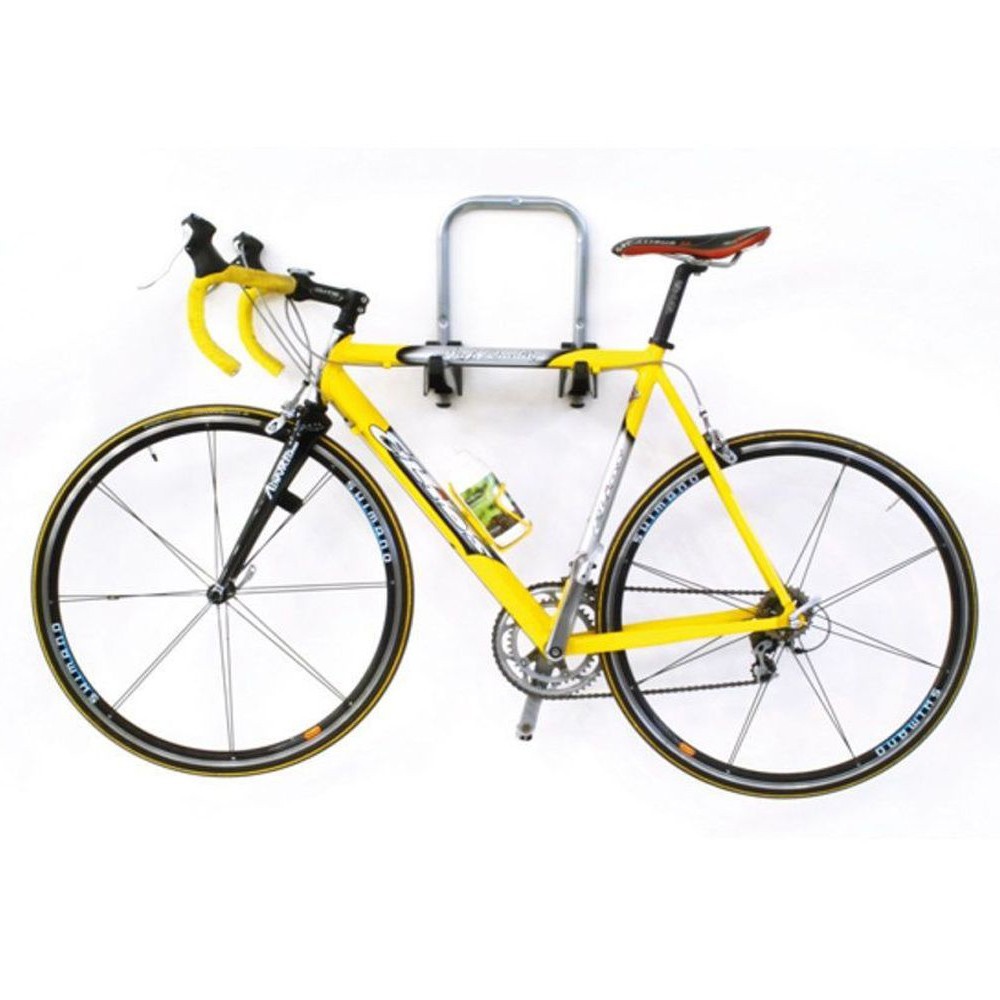 Bicicleta se aseaza cu ruda pe cele doua brate cu care este dotat suportul.