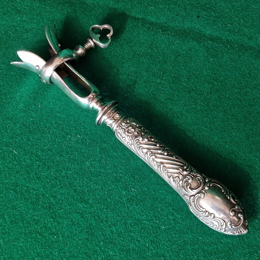 Suport din argint pentru fixarea osului la pulpa de miel gatita - FRANTA anii 1850, stare perfecta, dim: 21 cm