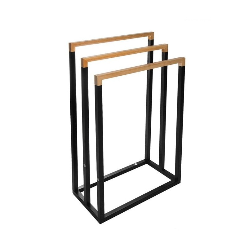 Suport din bambus cu 3 spatii pentru prosoape 45 x 21 x 76 cm, cadru metalic negru