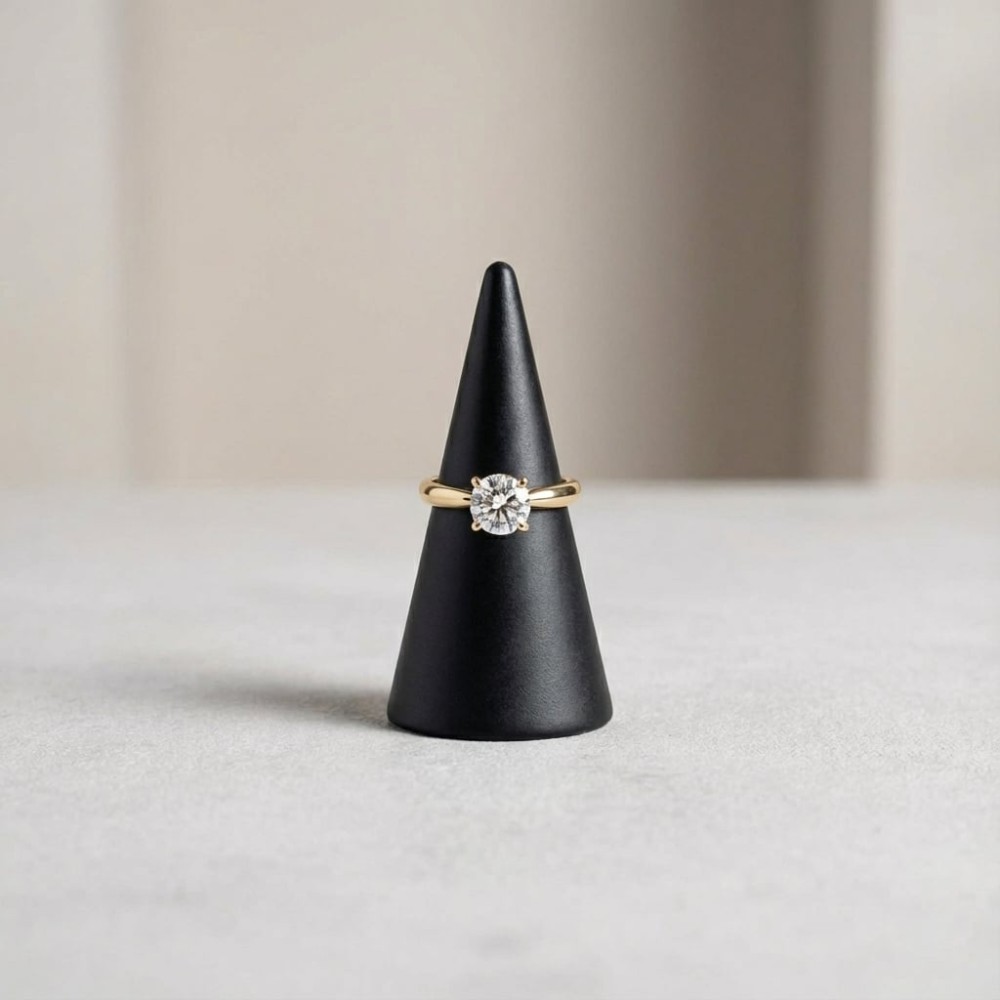 Acest suport elegant pentru expunerea inelelor este alegerea potrivită pentru prezentări profesionale, fotografii de produs sau organizarea bijuteriilor acasă. Designul curat, în formă de con, pune în valoare orice inel, oferind un aspect modern și premium.