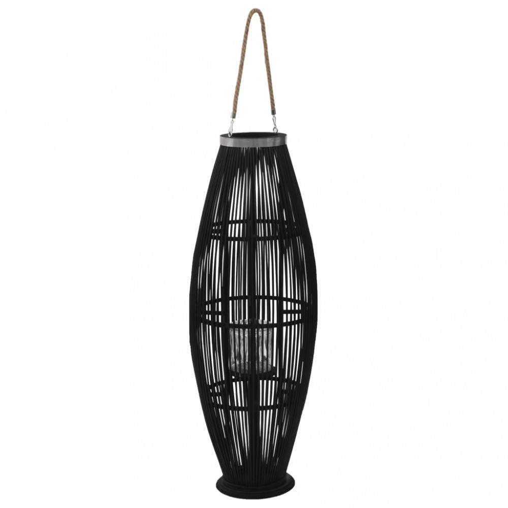 Suport felinar lumânări suspendat, negru, 95 cm, bambus