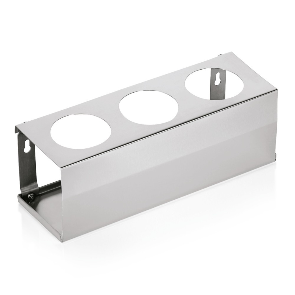 Mentine blatul de lucru, masa de bar sau statia de servire perfect organizata cu acest suport profesional din inox, conceput special pentru flacoanele de sosuri! Suportul are loc pentru 3 flacoane cu diametrul maxim de 7.5 cm si asigura un acces rapid si igienic la condimente si topping-uri.
