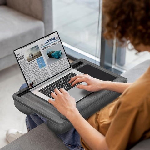 Suport Laptop cu Mousepad, Suport Telefon, Tableta, Ergonomic, Perna Dubla, Portabil, 10-16", 58x38x8 cm, Negru/Gri