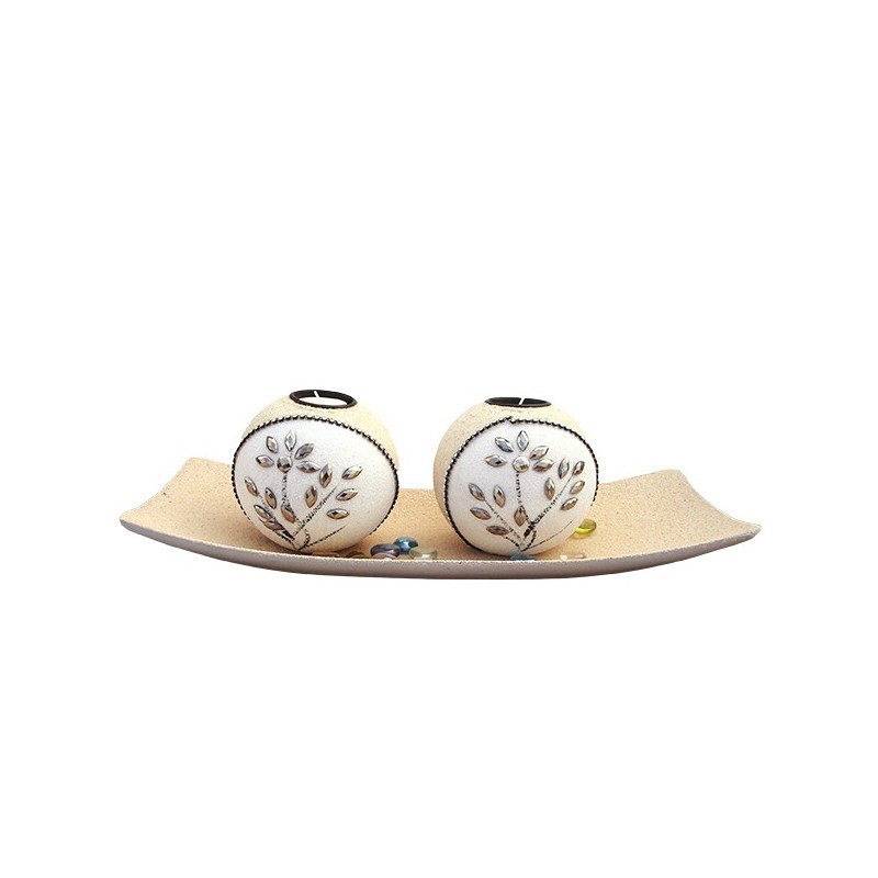 Set format din 2 suporturi sferice pentru lumanare tip pastila pe