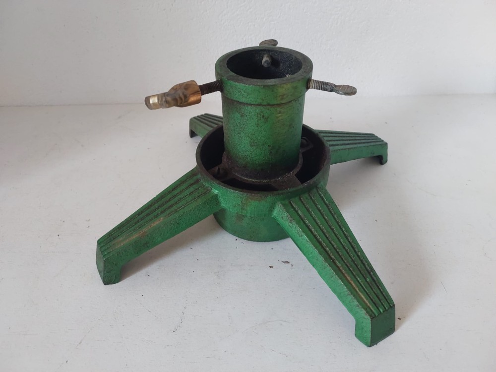 Suport metalic pentru pom / brad de Craciun, model deosebit, vintage, vechi, fonta, verde si auriu