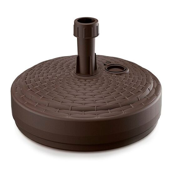 Reprezinta o baza stabila si solida pentru corpul umbrelelor. Va face fata cu succes vantului puternic sau altor conditii meteo nefavorabile.Poate fi instalat oriunde, pe terasa, in gradina sau pe plaja.Este posibil sa fie umplut atat cu apa, cat si cu nisip pentru a putea fi utilizat.Textura imita cu fidelitate ratanul, acest aspect oferind o imagine atractiva si interesanta. Se va potrivi cu siguranta in orice decor.Materialul de calitate inalta rezista deteriorarilor si decolorarii provocate de uzura.Baza este compatibila cu cele mai comune umbrele de soare, cu stalpii de sustinere avand diametrul intre 25 si 38 mm.Ocupa un spatiu redus si este simplu de transportat si depozitat.Specificatii: