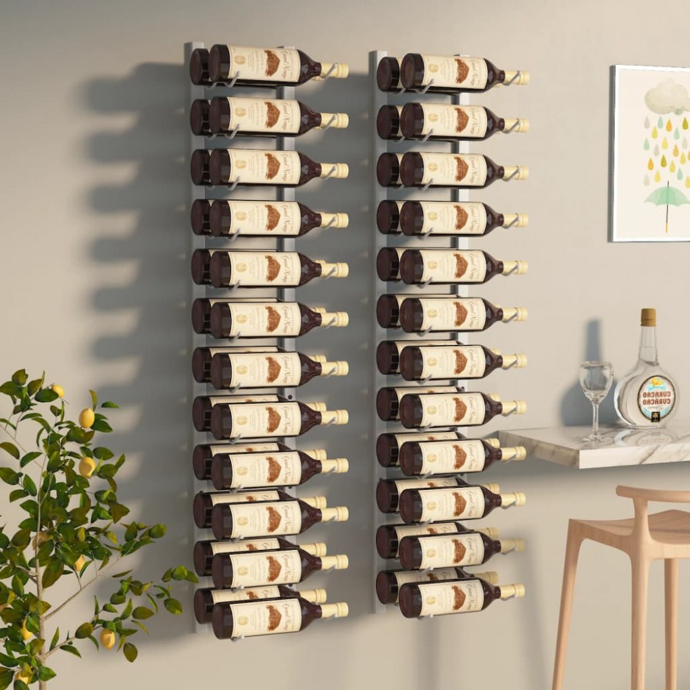 Suport sticle vin montat pe perete 24 sticle, 2 buc. alb, fier