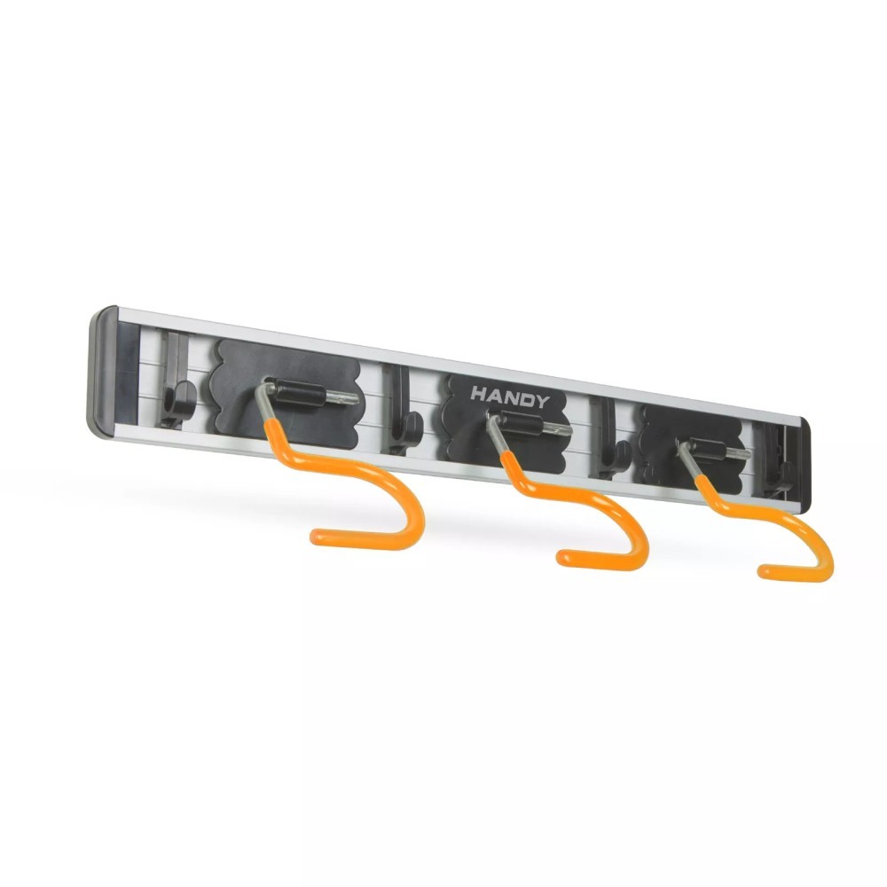 Suport universal de perete pentru 7 obiecte HANDY. Potrivit pentru depozitarea compactă a articolelor și uneltelor de zi cu zi. Uneltele și instrumentele de despicare pot fi stocate compact. Potrivit atât pentru uz interior, cât și pentru exterior. 7 spații de depozitare pentru orice tip de dispozitiv (diametrul mânerului min. 1,5 - max. 3 cm). Montare pe perete cu 2 dibluri, șuruburi (incluse). Există, de asemenea, umerașe pe suport unde puteți atârna șervețele, cârpe, mănuși. Atât în interior, cât și în exterior Deține 4 unelte hangable și 3 instrumente de mâner Acoperire cauciucată Ușor de instalat Dimensiunea: 37 x 5 x 1 cm Culoare: Gri Incluse: 2 dibluri, 2 șuruburi Greutate: 200 g.