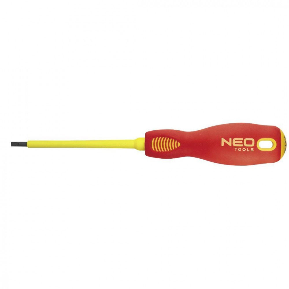 NEO 1000V surubelnita plata (ref. 04-052) cu dimensiuni 3,0 x 100 mm. Omologat pentru lucrul la tensiuni de pana la 1000 V. Lama surubelnitei este fabricata din otel SVCM extrem de rezistent. Extremitatea de lucru a lamei a fost tratata termic, ceea ce duce la o duritate adecvata si la o rezistenta la indoire de 56 HRC. Surubelnita are un varf magnetic. Forma triunghiulara a manerului cu suportul profilat pentru degetul mare reduce sarcina pe mana in timpul lucrului si faciliteaza obtinerea cuplului optim. Manerul din doua materiale previne alunecarea in mana si este rezistent la substante chimice, uleiuri si grasimi. Calitatea uneltei este confirmata de certificatul TÜV si de garantia de 25 de ani a producatorului. Marca NEO raspunde asteptarilor profesionistilor.