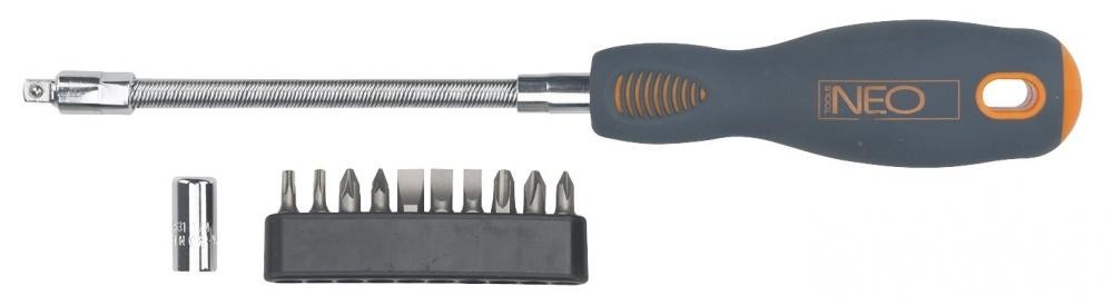 Surubelnita flexibila cu 12 bititija realizata din otel Crom-Molibden3 biti drepti: 5, 6 si 7 mm1 bit PH1, 1 bit PH21 bit PZ1, 1 bit PZ21 bit TORX T15, 1 bit TORX T20