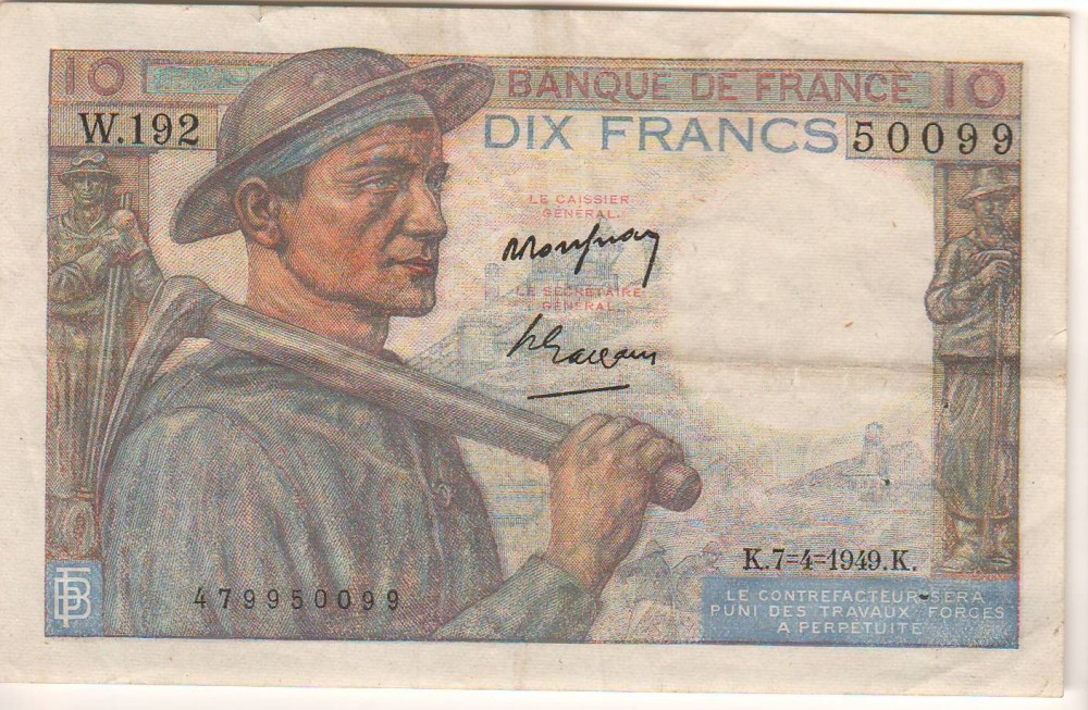 SV * Franta 10 FRANCS 1949 +/- VF, post WWII