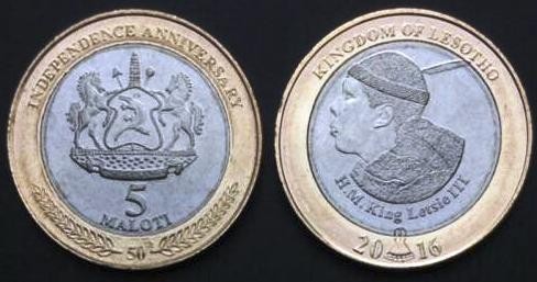 SV * Lesotho 5 MALOTI 2016 * 50 ANI INDEPENDENTA 1966 * Regele Letsie III * UNC