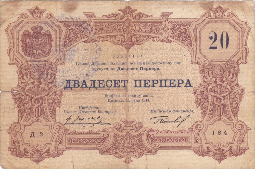 SV * Muntenegru 20 PERPERA 1914 - 1916 * Stampila Speciala WWI - F