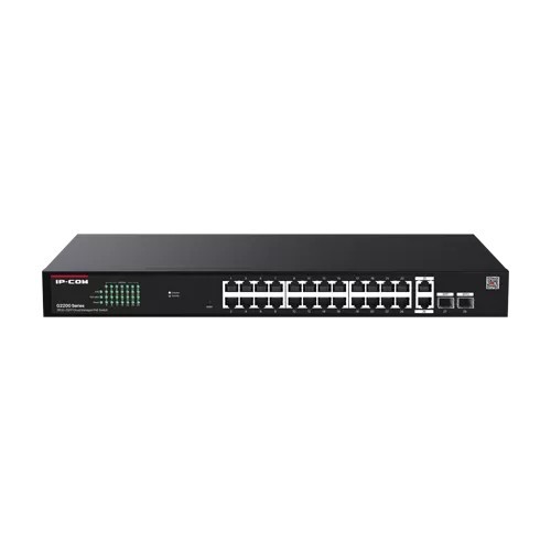 Switch 24 porturi PoE RJ45 Gigabit, 2 x RJ45 Gigabit, 2 x SFP Gigabit, Management, 1U - IP-COM G2228P-24-410W