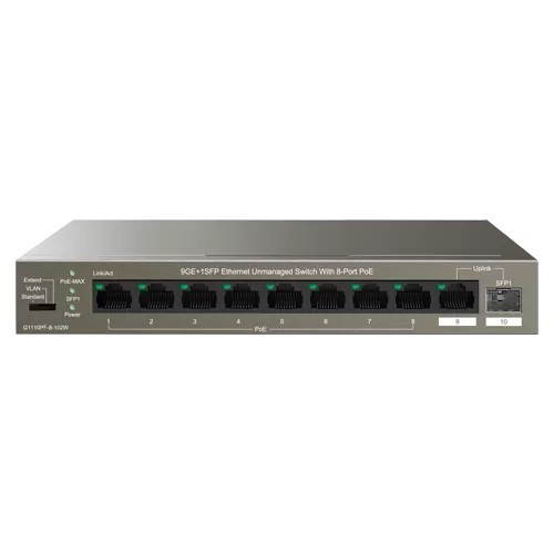 Switch 8 porturi Gigabit PoE, 1 x RJ45 Gigabit Uplink, 1 x SFP Gigabit Uplink - IP-COM G1110PF-8-102W