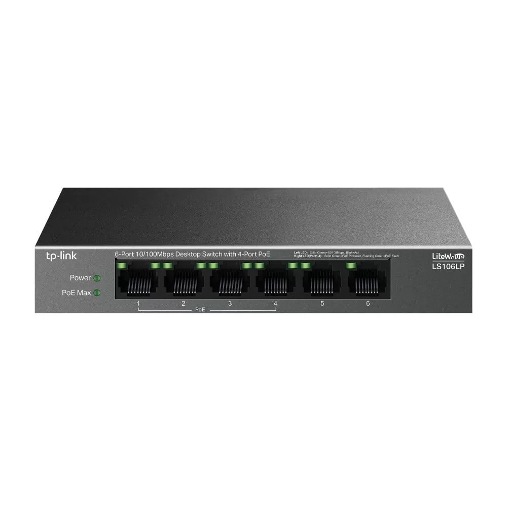 Switch LiteWave, 4 x RJ45 10/100 Mbps PoE, 2 x RJ45 10/100 Mbps, Buget PoE 41W, Unmanaged - TP-Link LS106LP
