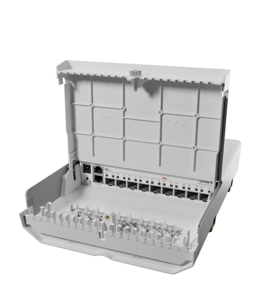 netFiber 9 este un switch puternic pentru exterior cu porturi SFP, SFP+ si Gigabit Ethernet. Dispune de un procesor ARM v7 puternic, 256 MB de RAM, 4 porturi 10G SFP+ si un switch-cip Marvell avansat care poate face fata chiar si celor mai grele sarcini. Portul Gigabit Ethernet nu este doar pentru scopuri de management. Are o conexiune directa la cipul switch-ului, – astfel incat sa va puteti bucura de viteza gigabit maxima. Acest port accepta si PoE-in, astfel incat nu trebuie sa va bazati pe mufa DC pentru alimentarea in locuri inguste si greu accesibile.