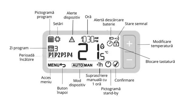 - Termostatele T3 Honeywell dispun de un display mare cu pictograme