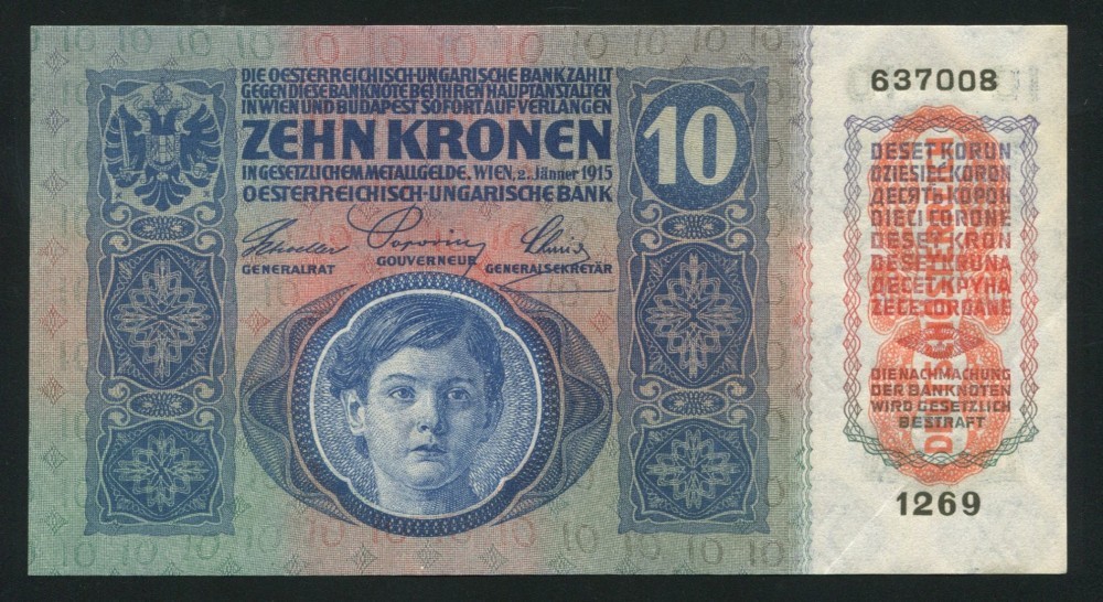 t832 AUSTRIA UNGARIA 10 KORONA COROANE 1915 stampilata DÖ aUNC text in romana NECIRCULATA UNC