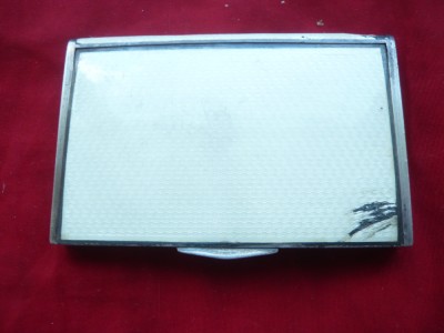 Tabachera pt tutun argint cca,1900 Austria ,forma carte ,imbracata in email ,9x5,8 x1cm , 147grame