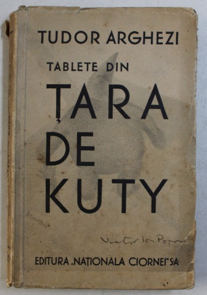 TABLETE DIN TARA DE KUTY de TUDOR ARGHEZI , 1933 , SEMNATA DE VICTOR ION POPA *