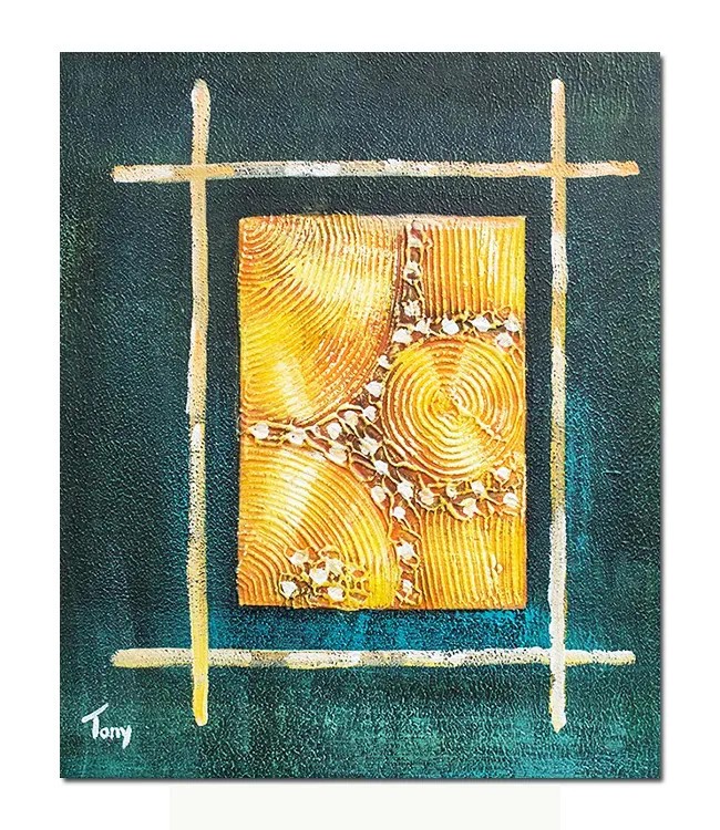 Tablou abstract pictat manual, Dreptunghi solar, 60x50cm ulei pe panza in releif
