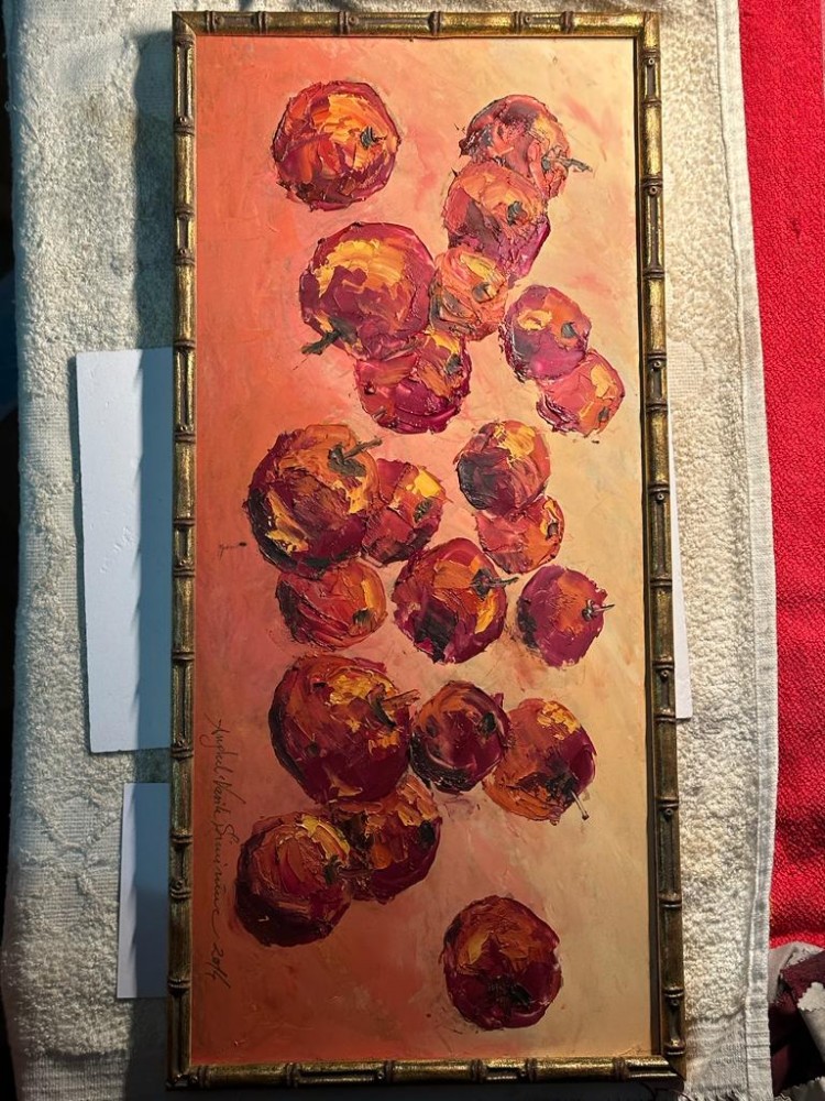 TABLOU ANGHEL VASILE SIMINIUC - Ulei pe carton - 50 x 23 - Mere Rosii !