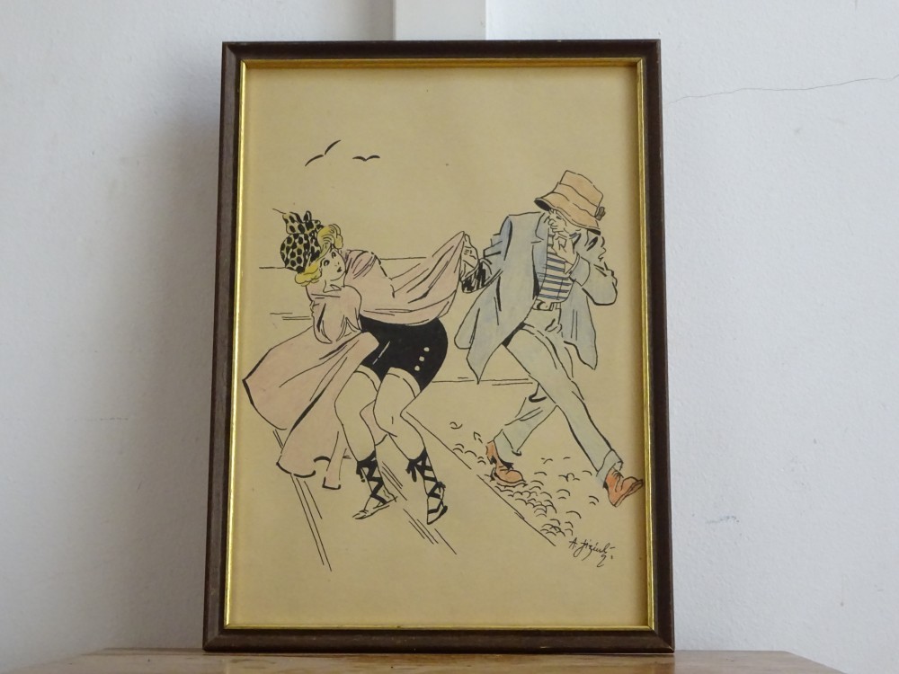 Tablou, Aurel Jiquidi (1896-1962), tehnica mixta pe hartie. Semnat