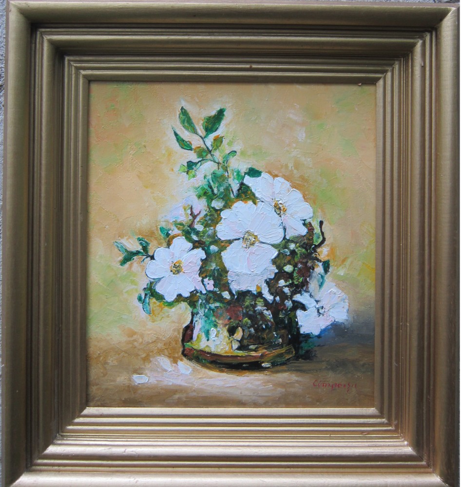 Tablou ghiveci cu flori semnat Cimpoesu.
