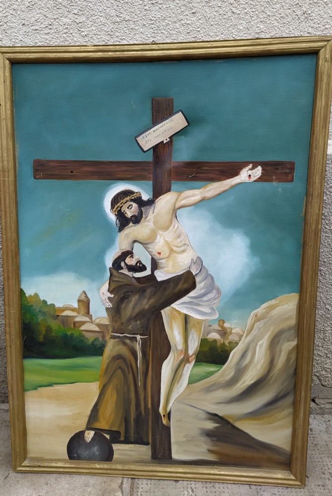 Vand tablou vechi religios reprezentand Isus pe cruce.