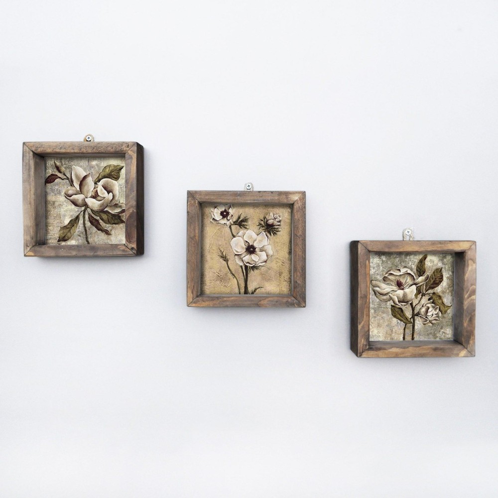 Tablou MDF cu rame Flori Uscate, Multicolor, 15x15 cm, 3 bucăți