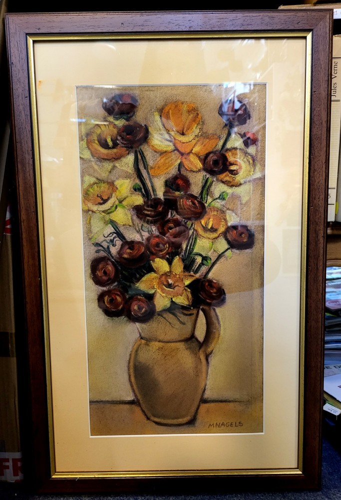 Tablou pastel "Vas cu narcise" - M. Nagels