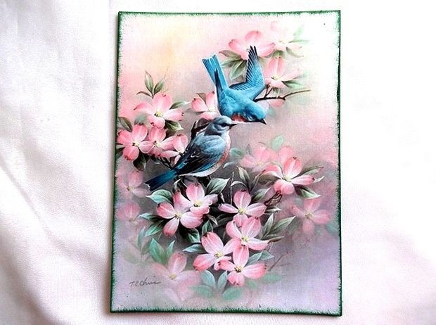 Tablou pe panza realizat cu tehnica decupaj, pictat cu acrilic si lacuit cu lac ecologic pe baza de apa. Flori inflorite de culoare roz.