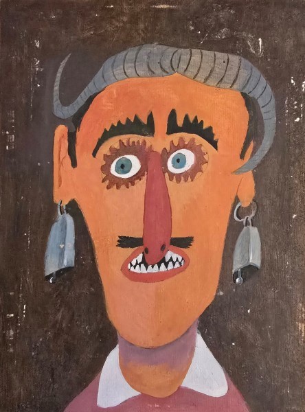 Tablou Petru Vintila - Masca, ulei/carton, dimensiune 26/20, semnat si intitulat pe verso " Petru Vintila, Masca"