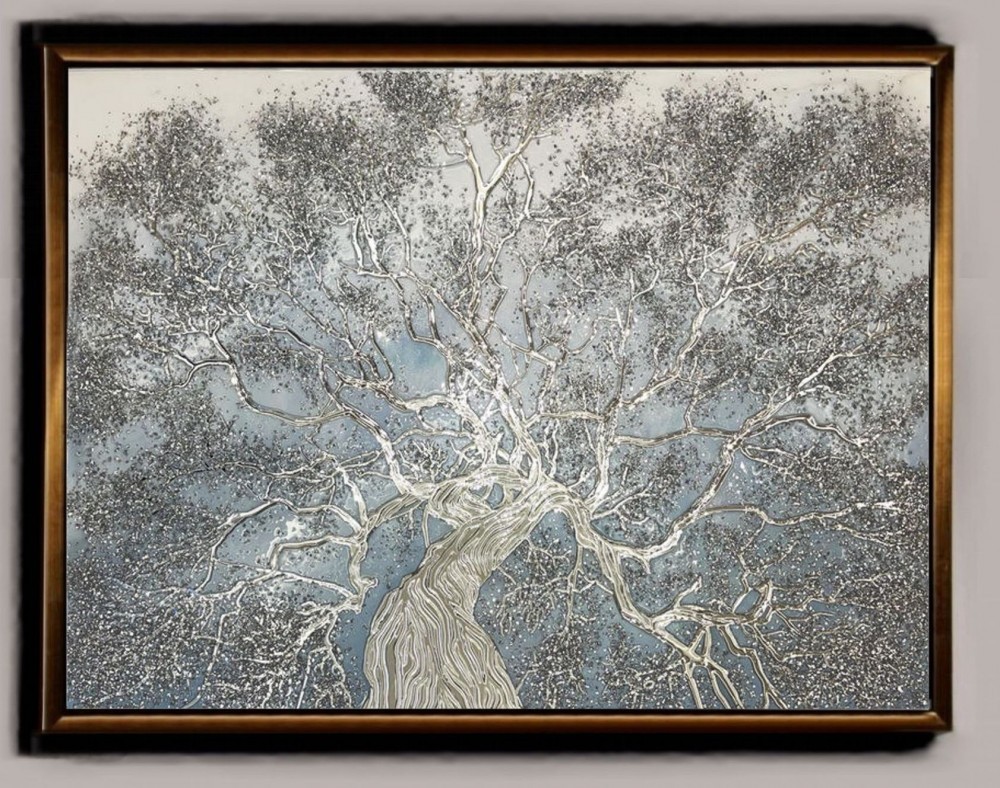 Tablou pictat manual Tablou abstract copac argintiu 100x80cm tablou pictat manual ulei pe panza, pictura veritabila ulei pe panza.