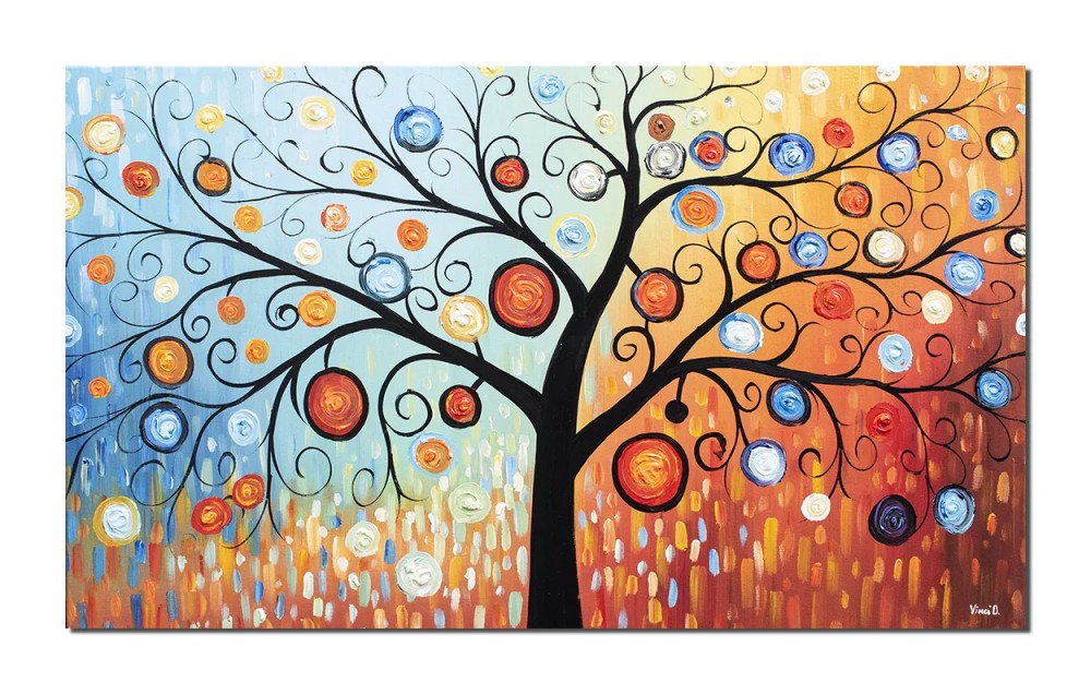 Tablou pictat manual living, dormitor, Copacul vietii, bucurie, 100x60cm ulei pe panza, Magistral