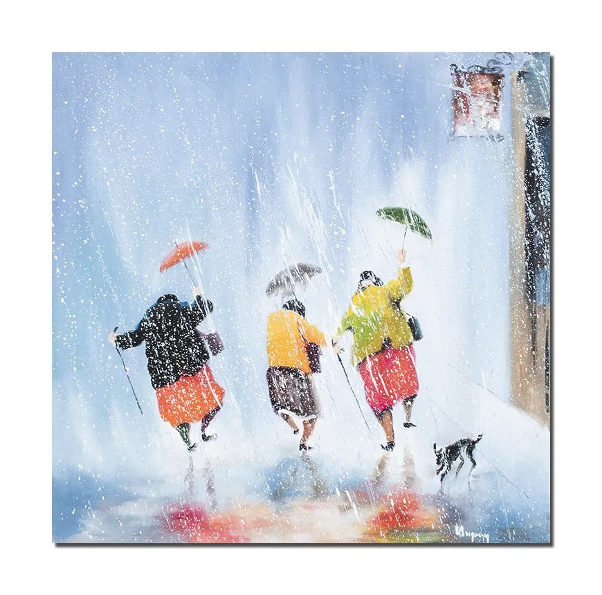 Tablou pictat manual, Prin ploaie, 70x70cm ulei pe panza Geo Ungureanu, reproducere Des Brophy