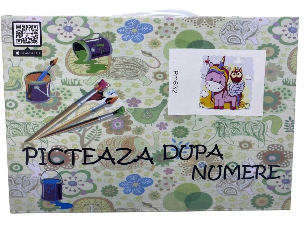 Set pentru pictură dupa numere,este primul pas pentru incepatori. Este distractiv si relaxant, pictura dupa numere ajuta la dezvoltarea simtului pentru frumos si a imaginatiei, a abilitatii si a capacitatii de concentrare. Continutul setului: – Panza de bumbac cu un desen simplu delimitat pe zone de mai multe linii si fixat pe o rama din lemn. Fiecare zona este marcata cu numere ce corespund unei anumite culori; – Culori pe baza de apa si acril in recipienti din plastic, ce nu necesita amestecare; – Set de pensule din materiale de calitate care ii ajuta pe cei mici sa picteze mai usor; – Instructiuni de utilizare precum si schita desenului de pe panza; – Clame de metal pentru agatarea tabloului. Dimensiuni: 20 x 30 cm Varsta recomandata: +5 ani