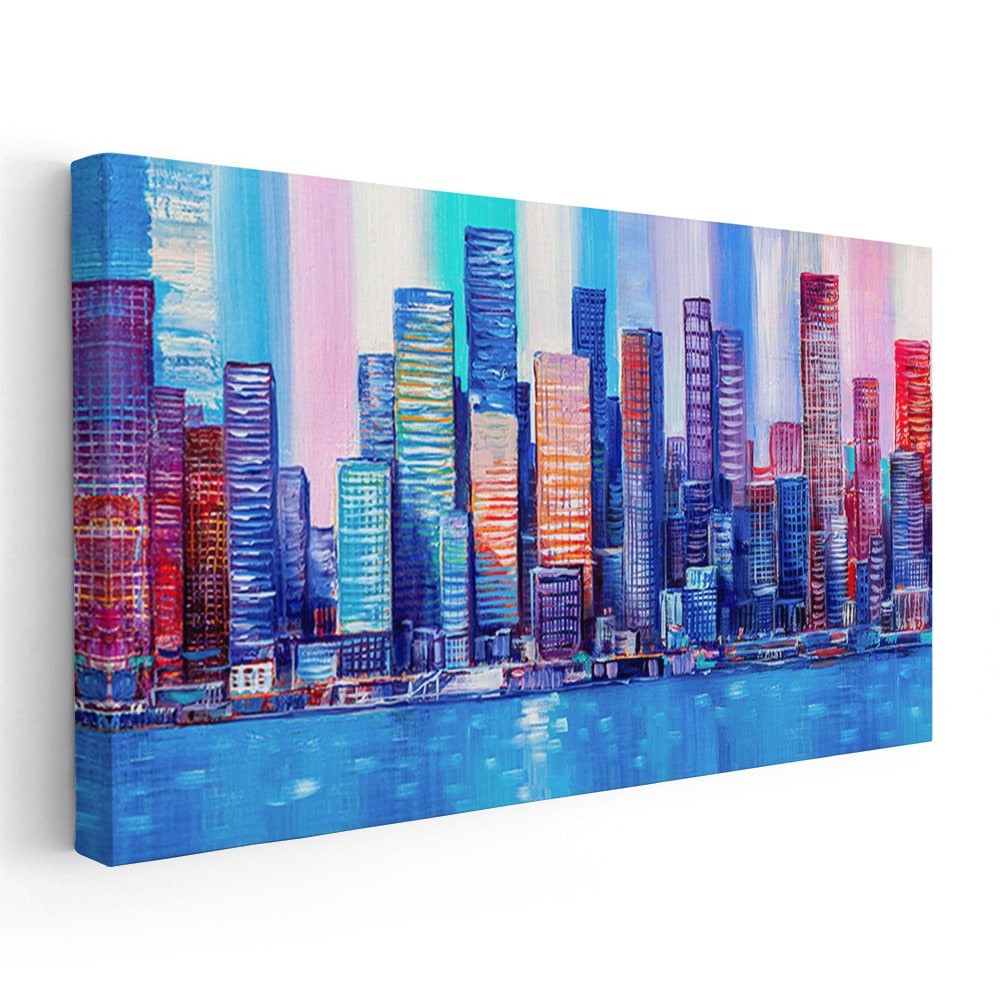 Tablou pictura cladiri moderne albastru 2073 Tablou canvas pe panza CU RAMA 40x80 cm