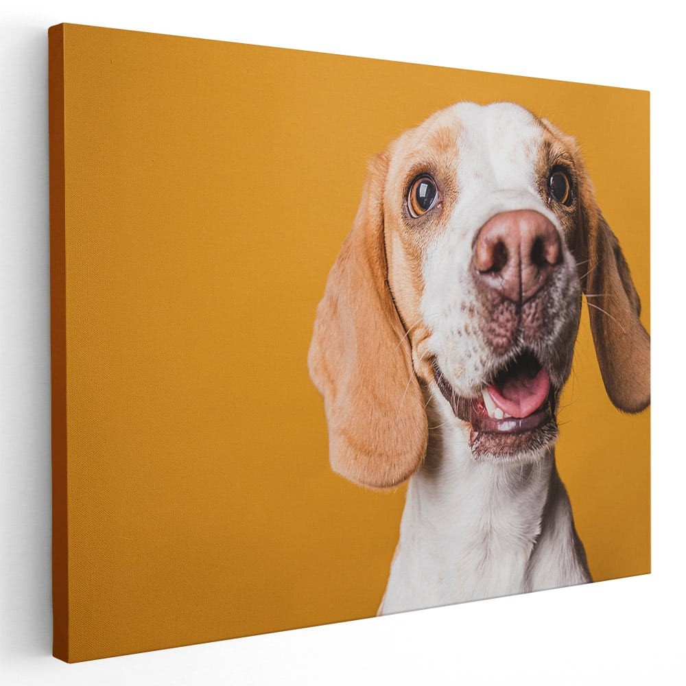 Tablou portret caine maro cu alb Tablou canvas pe panza CU RAMA 30x40 cm