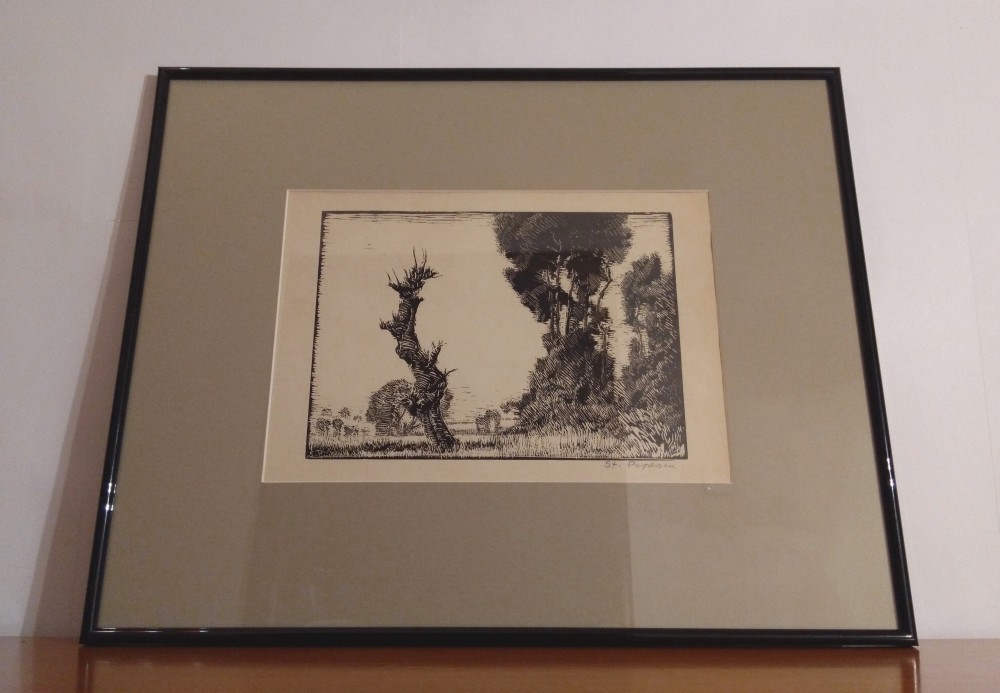 Tablou Stefan Popescu |In natura| Xilografie veche