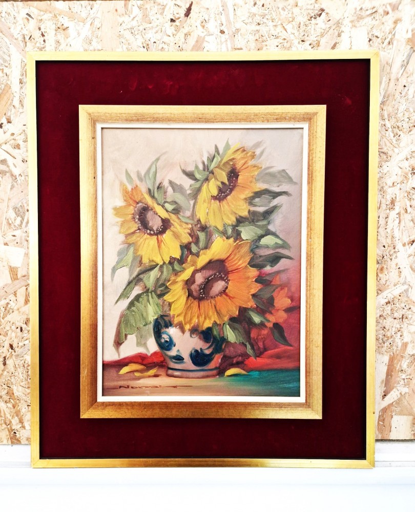 TABLOU ulei pe panza EDUARD NOWAK - Floarea Soarelui anii '60 in Vaza catifea