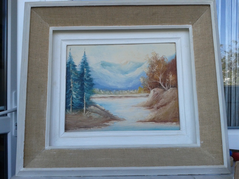 TABLOU VECHI ULEI-CARTON /DIM.42X37CM /RAMA DUBLA-LEMN-NATUR /STARE PERFECTA /