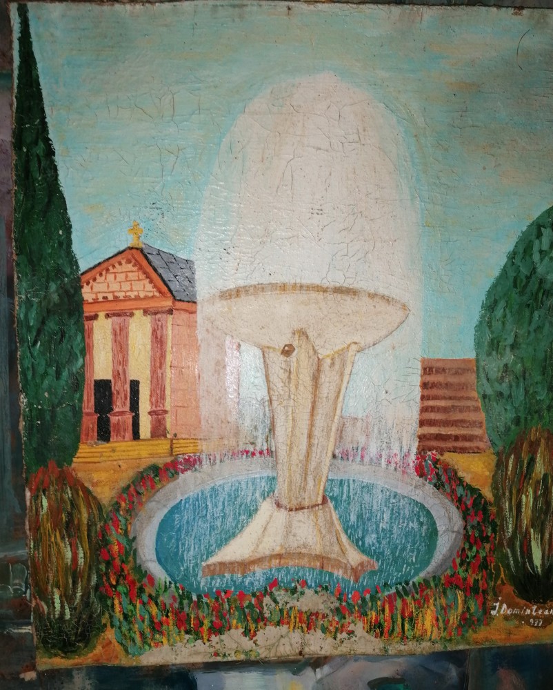 TABLOU VECHI PICTAT PE PLACAJ - SEMNAT I DOMINTEANU 1977