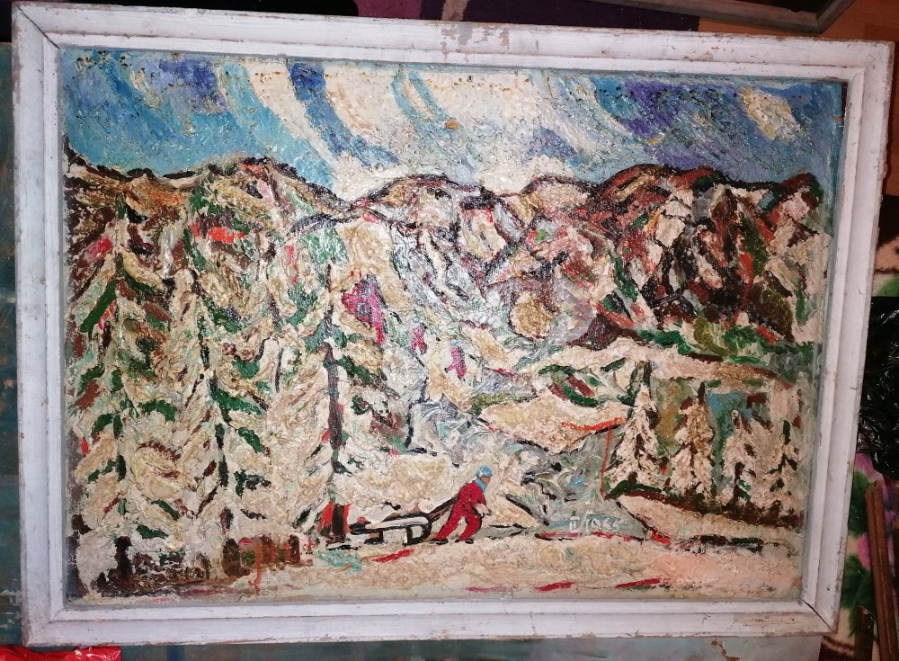 TABLOU VECHI PICTURA ULEI PE CARTON NESEMNAT ,ANII 65