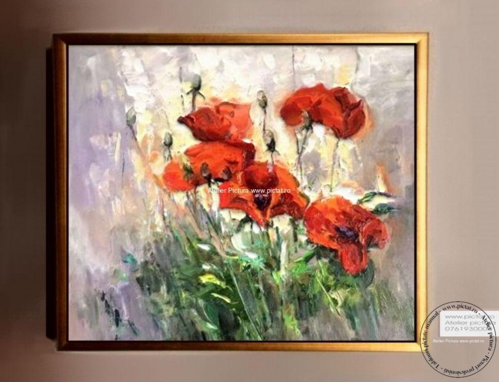 TABLOURI PICTATE MANUAL TABLOURI PICTATE MANUAL TABLOU CU FLORI DE CAMP TABLOU ORIGINAL PICTURA CUTIT TABLOU CU MACI ROSII 66X55CM.