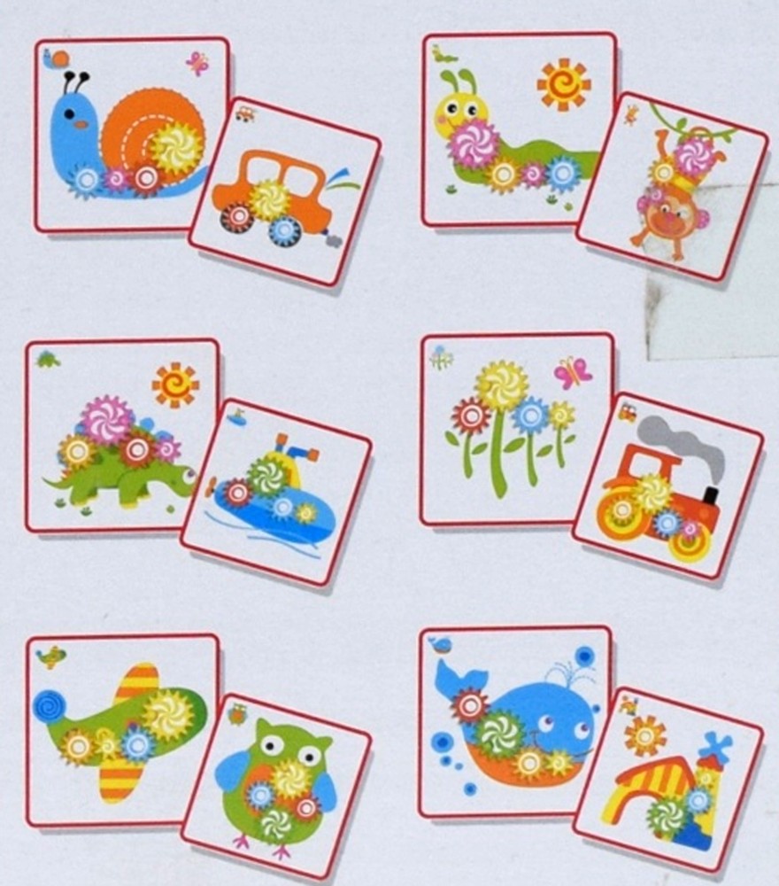 Tablouri puzzle educative, butoane colorate, roți dințate și imagini pentru copii cu vârsta peste 3 ani