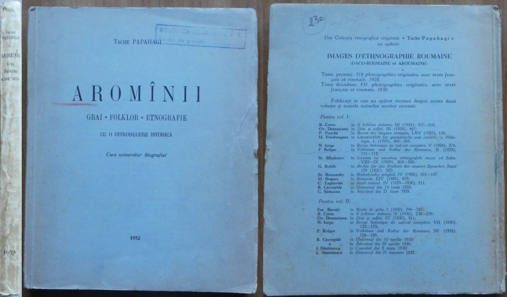 Tache Papahagi , Aromanii , 1932 , autograf catre Simion Mehedinti