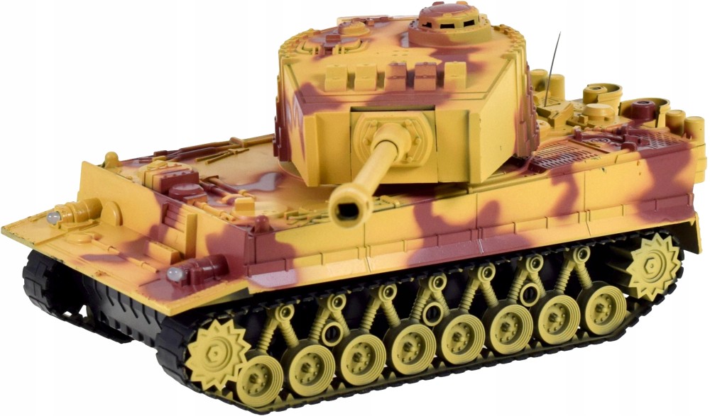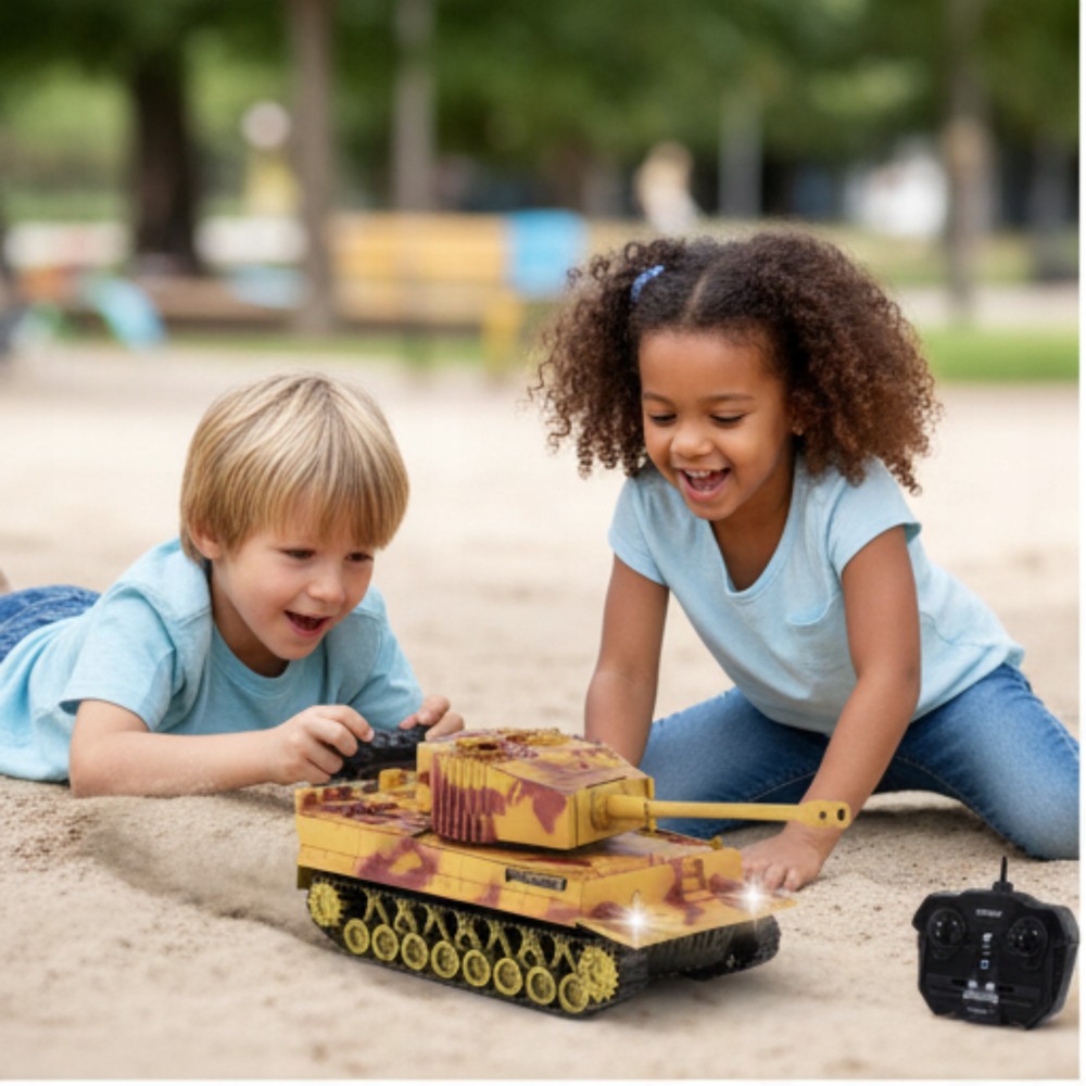 Descoperiți tancul Tiger cu telecomandă – o replică fidelă a legendarului vehicul german din al Doilea Război Mondial. Acest model la scara 1:28 impresionează prin detaliile sale, sunetele realiste ale motorului și ale focurilor de armă, precum și prin telecomanda dinamică.